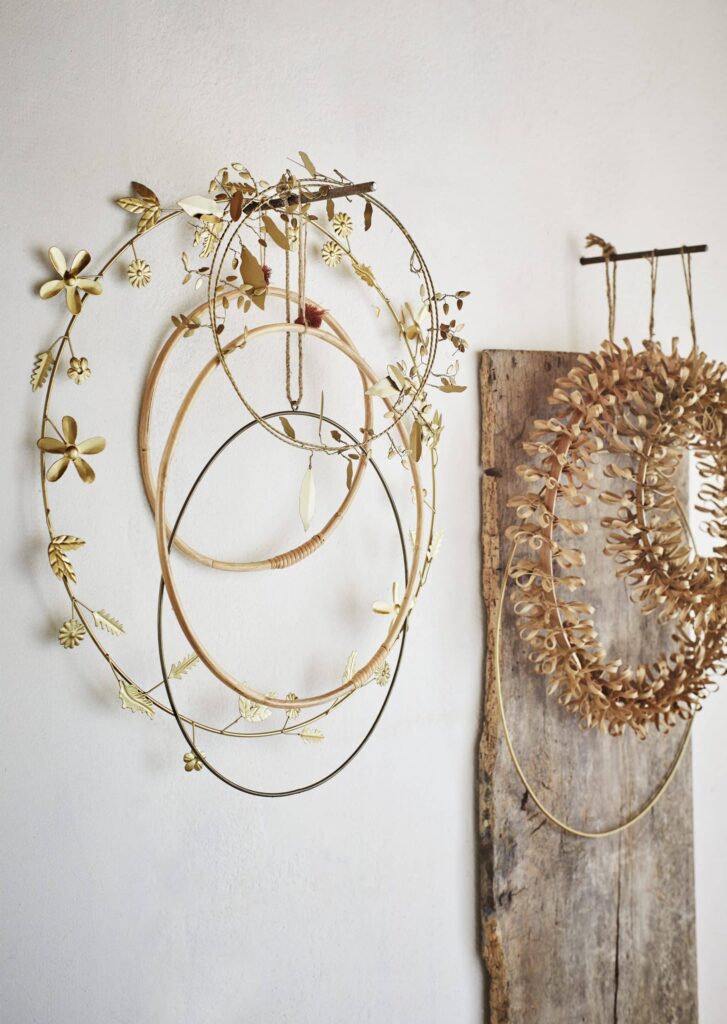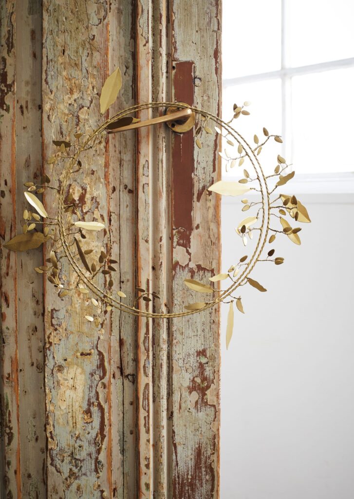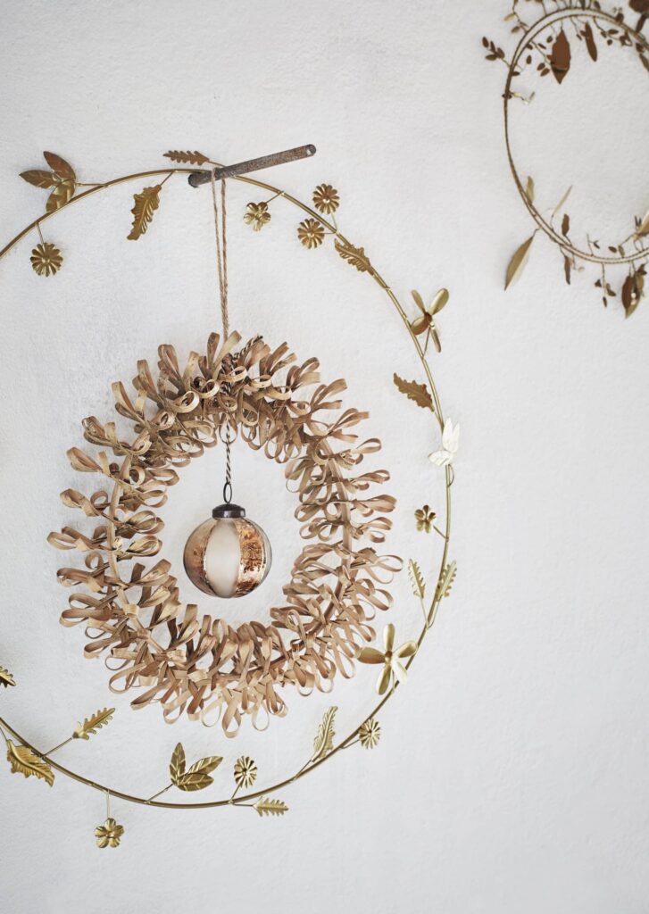 La Corona Metal Hojas Navidad aporta un toque festivo y elegante gracias a su acabado en antique brass y su diseño de hojas metálicas. Perfecta para decorar puertas, paredes o rincones especiales durante la temporada navideña, añade brillo cálido y un estilo tradicional renovado.