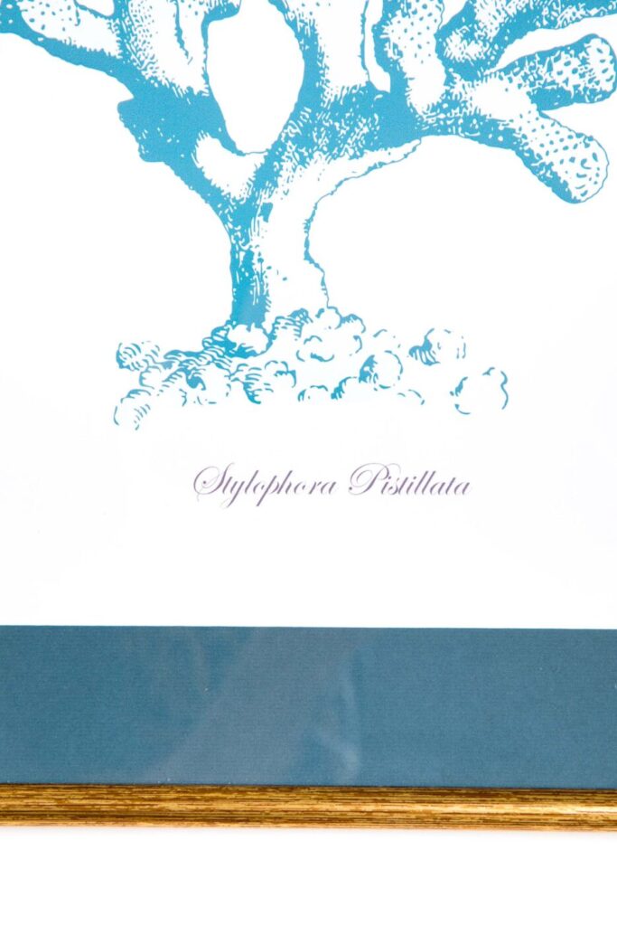 El Cuadro Siena B presenta delicados detalles de corales en tonos azules, montados sobre paspartú con cristal y moldura dorada de efecto envejecido. Su forma curva y su acabado artesanal lo convierten en una pieza elegante y equilibrada, perfecta para aportar un toque sofisticado y natural a cualquier estancia.