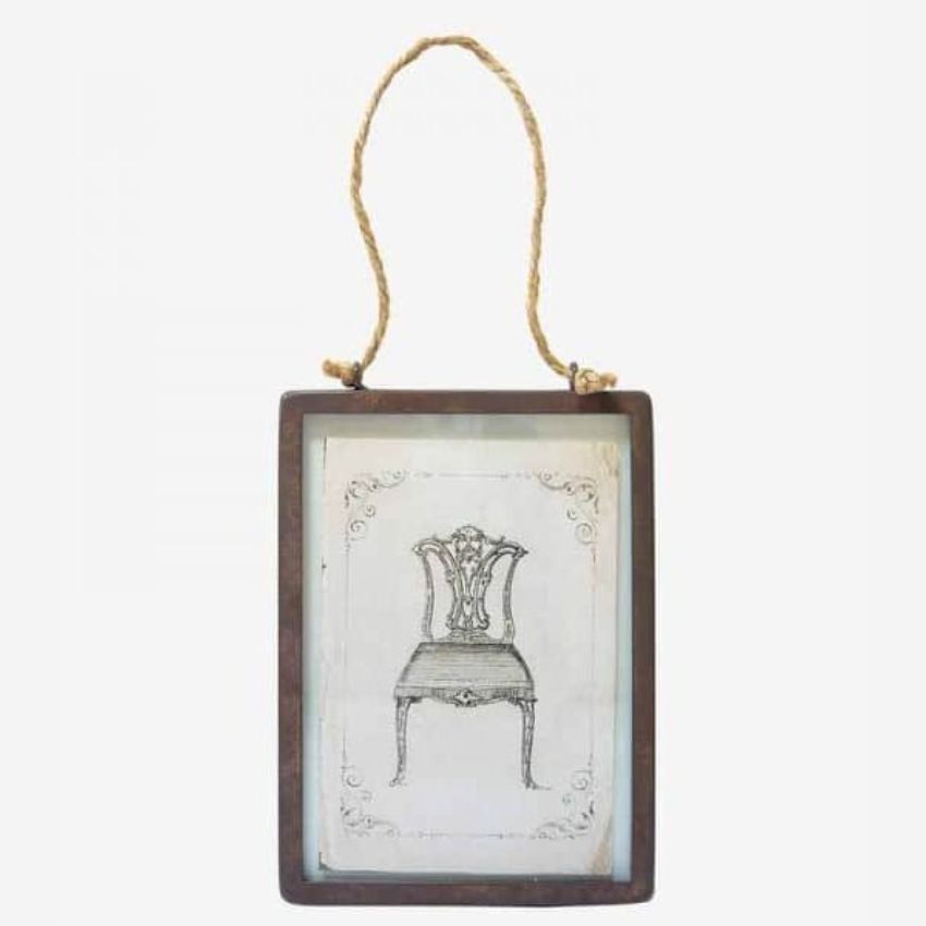 El Cuadro Silla es una pieza decorativa compacta con acabado óxido y cierre de cristal, perfecta para añadir un detalle original en pequeñas paredes, composiciones o estanterías. Su asa de cuerda facilita la colocación y aporta un toque rústico y artesanal que encaja en ambientes naturales y cálidos.