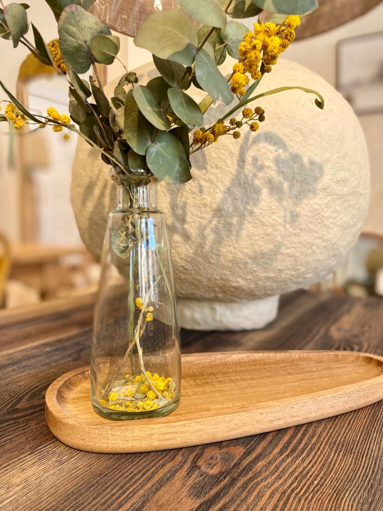 El Jarrón Soma presenta un diseño esbelto en cristal soplado de tono claro, perfecto para aportar ligereza y elegancia a cualquier ambiente. Su forma estilizada lo hace ideal para flores finas, ramas delicadas o como pieza decorativa mínima. Las pequeñas irregularidades del cristal soplado le añaden autenticidad y encanto.