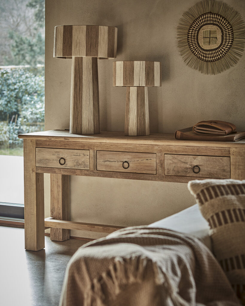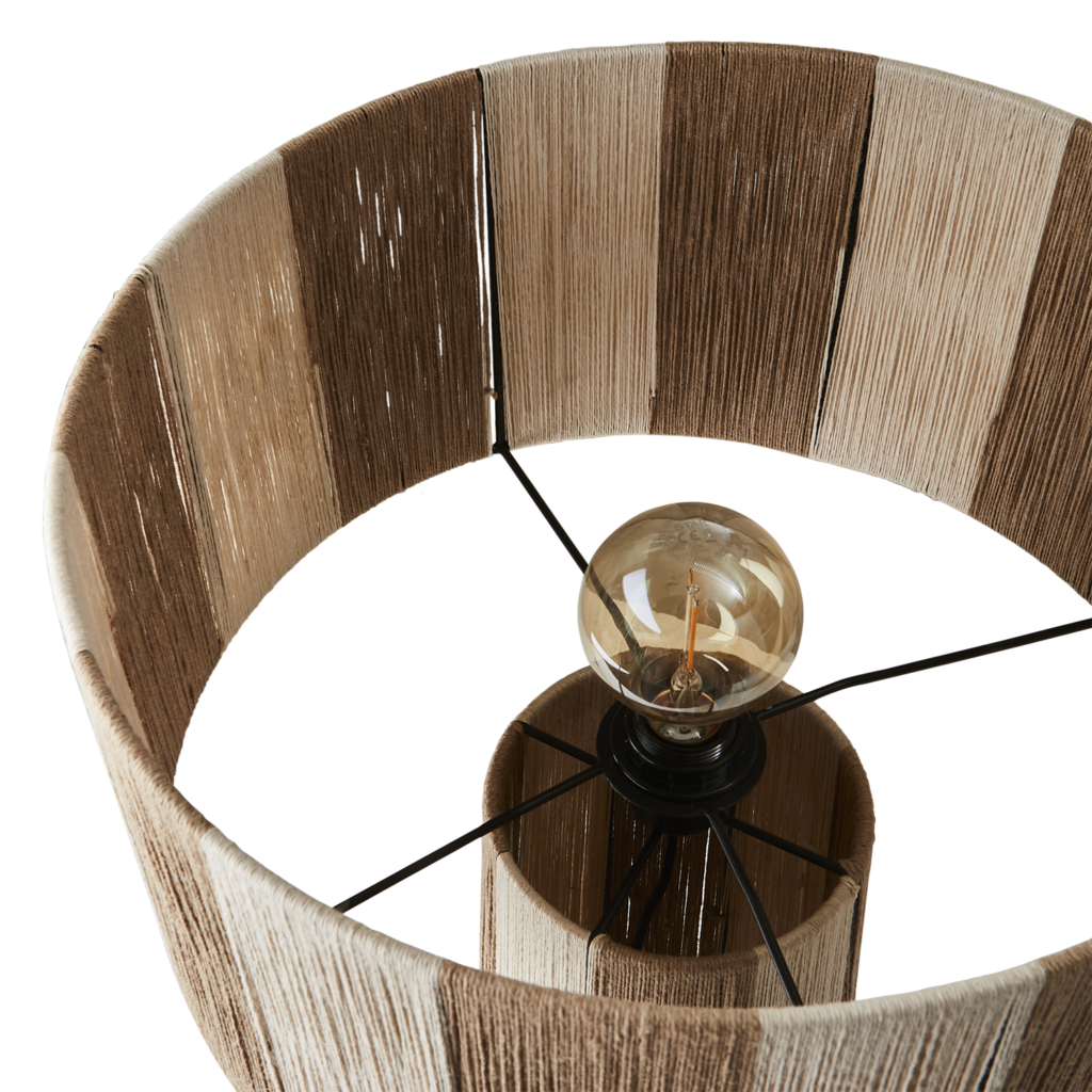 La Lámpara Beline Grande combina yute en tono marfil/natural con una estructura de hierro, creando una pieza cálida y elegante que aporta textura a cualquier estancia. Su diseño alto y estilizado la convierte en un punto de luz decorativo ideal para salones, dormitorios o entradas. Incluye cuerda textil de 1,20 m y enchufe europeo.