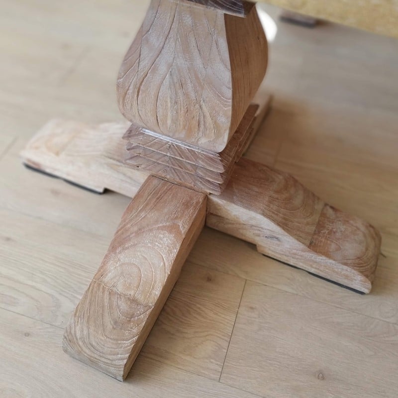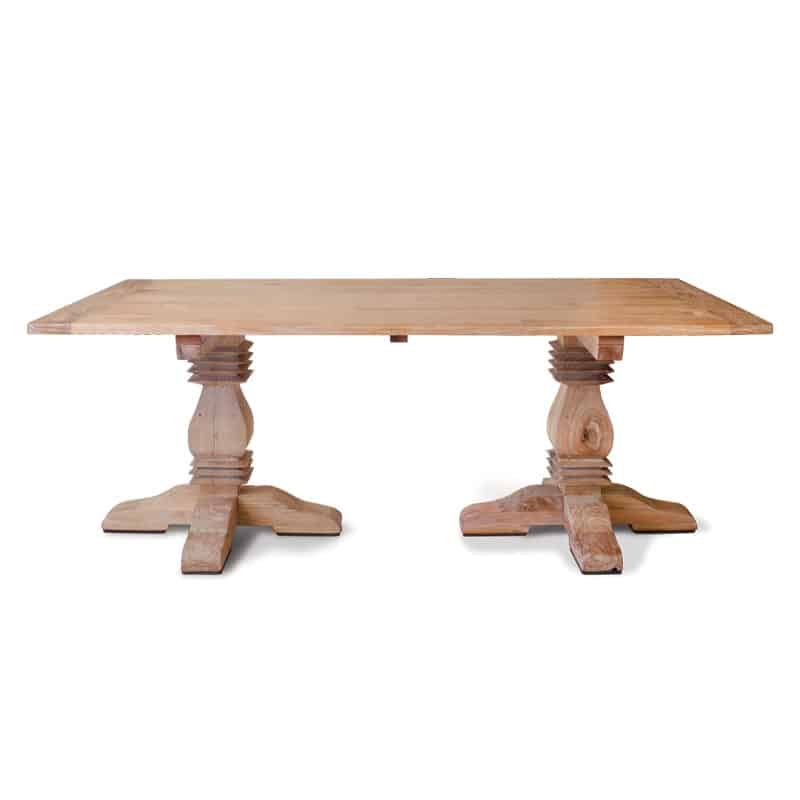 La Mesa Comedor Celina 200 cm combina un diseño clásico con una estructura sólida en madera maciza de mindi. Sus dos pies centrales torneados aportan elegancia y presencia, mientras que el acabado natural resalta la belleza de la madera. Ideal para comedores amplios y acogedores, donde prima la calidez y el estilo atemporal.
