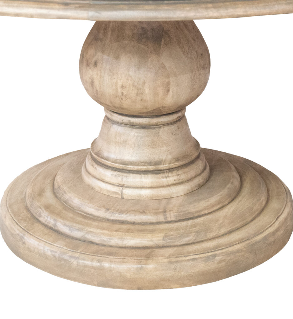 Mesa de comedor con pie central en madera maciza natural, elegante y funcional, ideal para crear un ambiente cálido y con encanto.