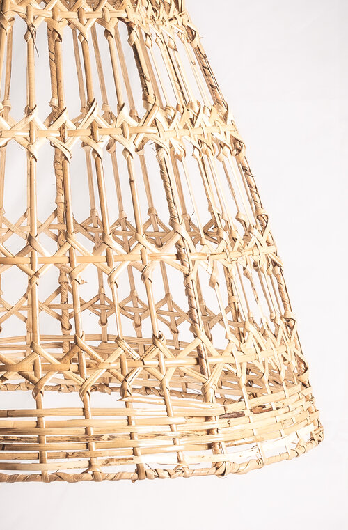 La Pantalla Fibra Natural Calcuta está elaborada en rattán natural y diseñada para utilizarse como lámpara de techo incorporando el cableado correspondiente. Su forma amplia y vertical aporta presencia y un estilo natural perfecto para ambientes mediterráneos, cálidos o contemporáneos. Ideal para convertirla en una pieza protagonista del espacio.
