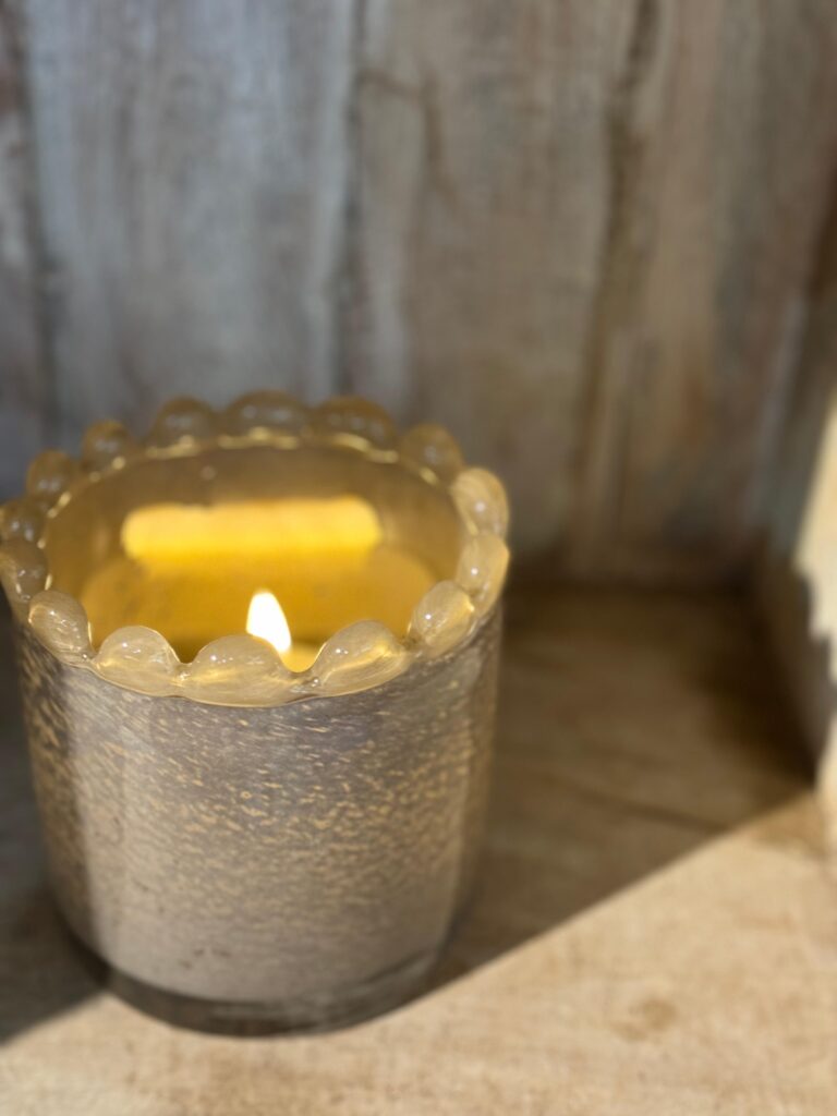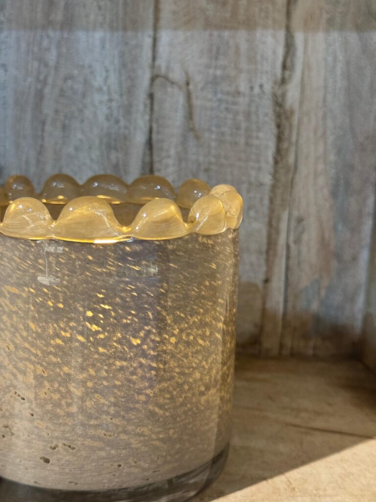 El Portavelas Cristal Olas aporta un juego de luz elegante gracias a su relieve ondulado. Su diseño en cristal crea reflejos cálidos y delicados, perfecto para mesas auxiliares, estanterías o rincones ambientales. Una pieza con presencia y textura, ideal para elevar la decoración con un toque sutil y sofisticado.