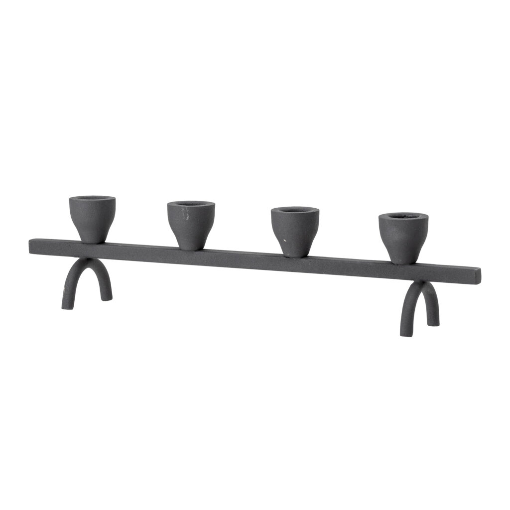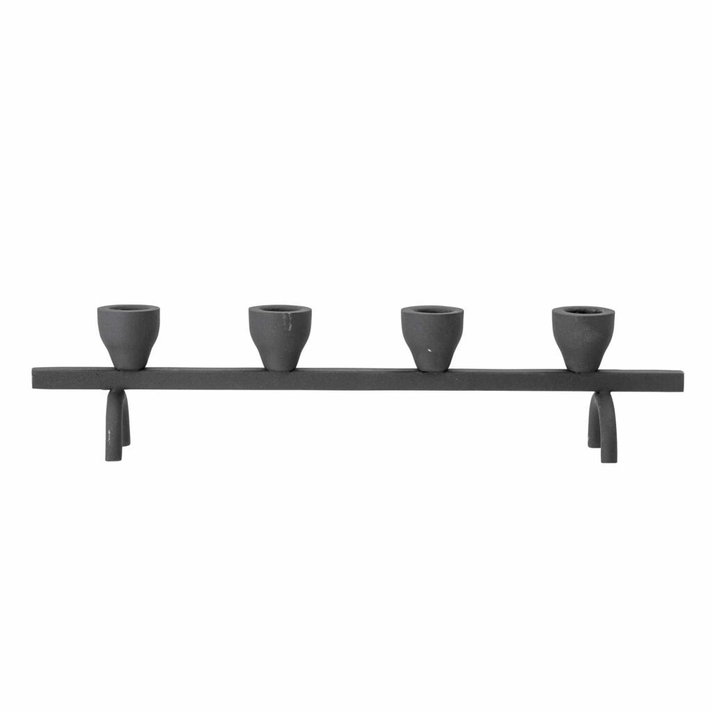 El Portavelas Lucca combina líneas alargadas y un acabado negro que aporta elegancia y presencia en cualquier espacio. Su diseño estilizado en metal permite crear composiciones limpias y modernas sobre mesas auxiliares, consolas o estanterías. Ideal para velas finas de Ø 2,2 cm, aportando un ambiente cálido y sofisticado.