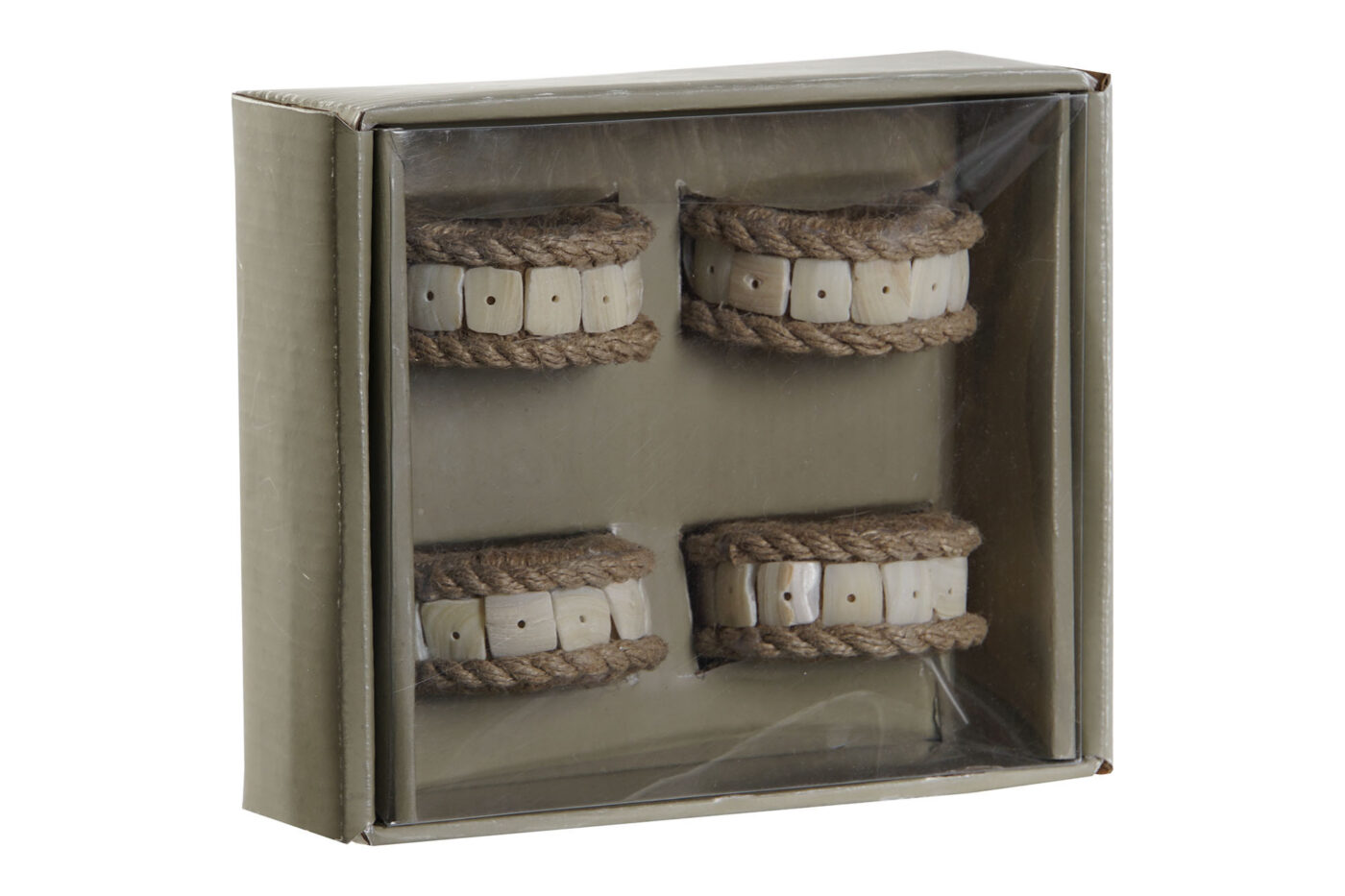 El Set 4 Servilleteros combina yute y resina en un diseño sencillo y natural que aporta textura y calidez a la mesa. Perfectos para el día a día o para vestir una mesa informal con un toque diferente, son ligeros, decorativos y fáciles de integrar en cualquier estilo.