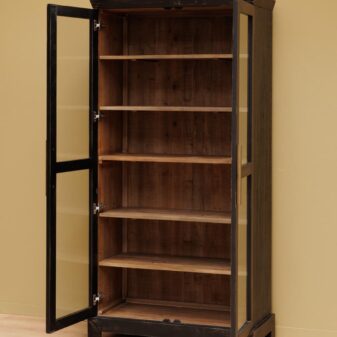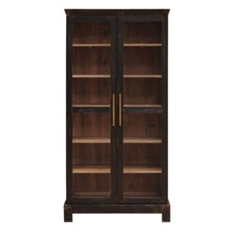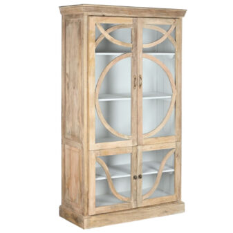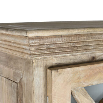 La vitrina Ciana combina diseño artesanal y funcionalidad en una pieza de gran presencia. Fabricada en madera maciza de mango y cristal, destaca por sus líneas rectas y su acabado natural que realza la belleza de la madera. Sus amplias puertas correderas y baldas interiores ofrecen un almacenamiento cómodo y elegante para vajillas, libros o piezas decorativas.